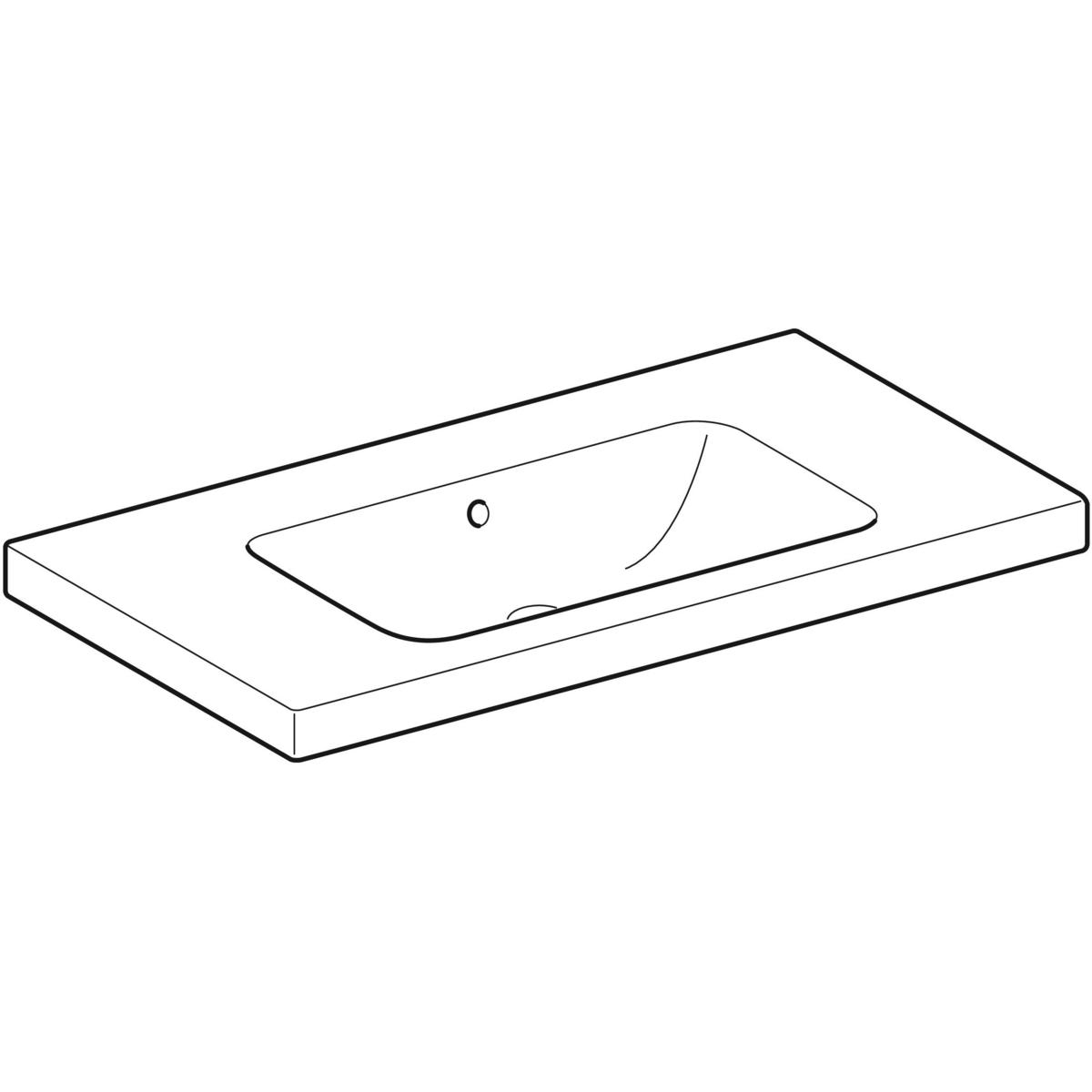 Umywalka GEBERIT iCon Light prostokątna, biała, 900mm, bez otworu na baterię, z odpływem przelewowym, półki z obu stron
