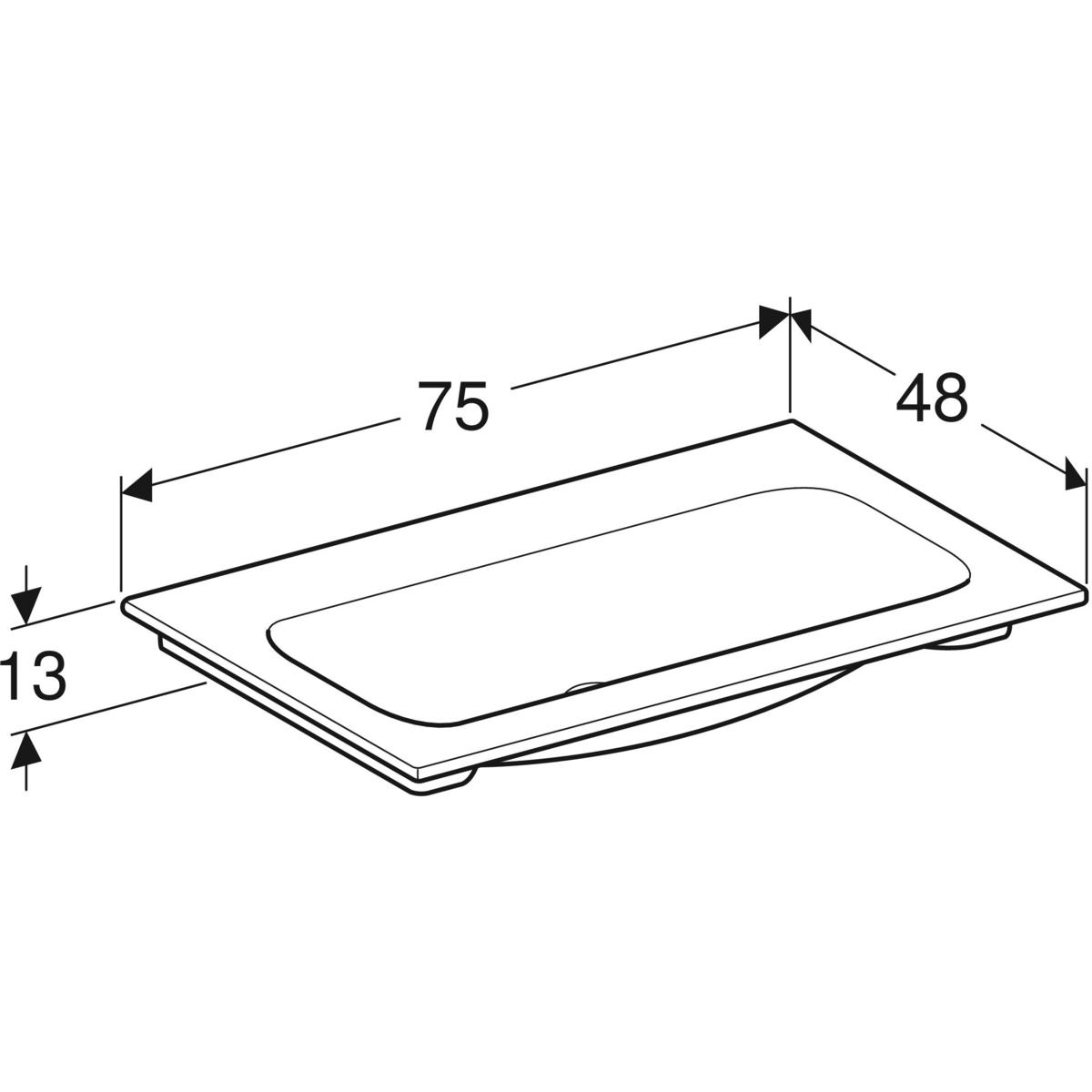 Umywalka GEBERIT iCon prostokątna, biała, 750mm, bez otworu na baterię, nakładany od góry, bez odpływu przelewowego, półka od ściany