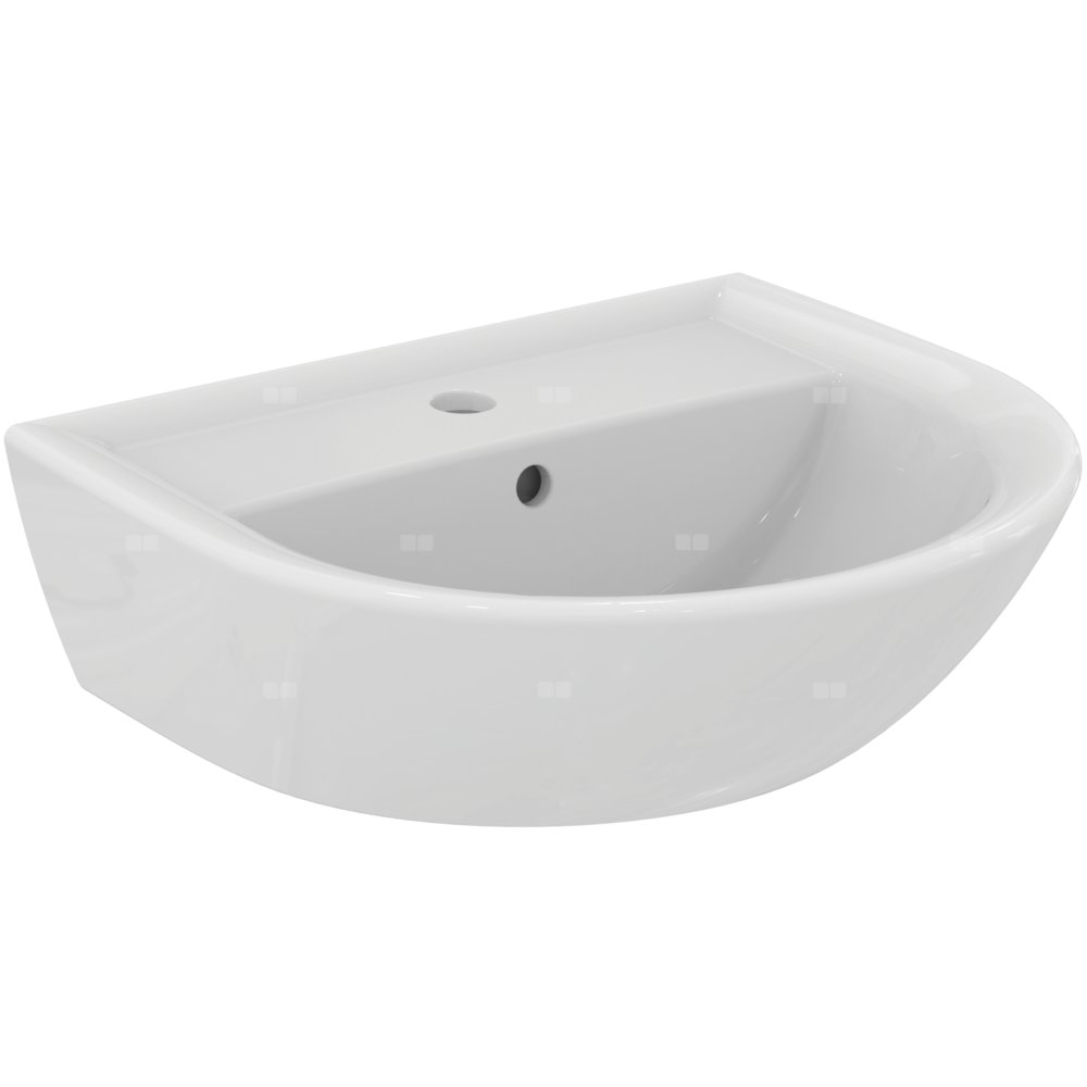 Umywalka IDEAL STANDARD EUROVIT owalna (montażu z postumentem lub półpostumentem ), biała, 500mm, otwór na baterię na środku, wiszący, bez odpływu przelewowego