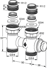 Vekolux Rp1/2 - Zestaw przyłączeniowy do grzejników dolnozasilanych z wkładką zaworową z funkcją odcięcia i opróżniania, prosty