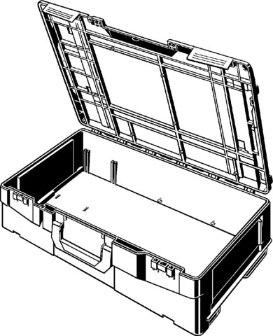 Walizka systemowa XL. Przeznaczenie: wszystkie elementy walizki systemowej XL, nie występuje wkładka nr wzoru 2202.9XL, maks. obciążenie 25 kg, w zestawie narzędziowym maks. 40 kg, kompatybilne z wyposażeniem pojazdów Sortimo, nr wzoru 2202XL, nr kat. 792 176, B: 607 H: 395 T: 179