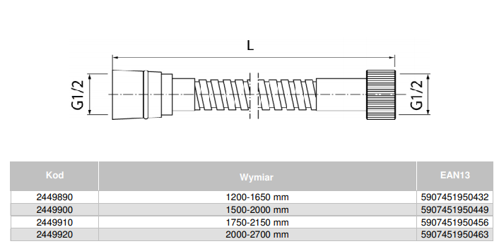 Wąż elastyczny VALVEX Protect stal nierdzewna, dł. 150-200cm