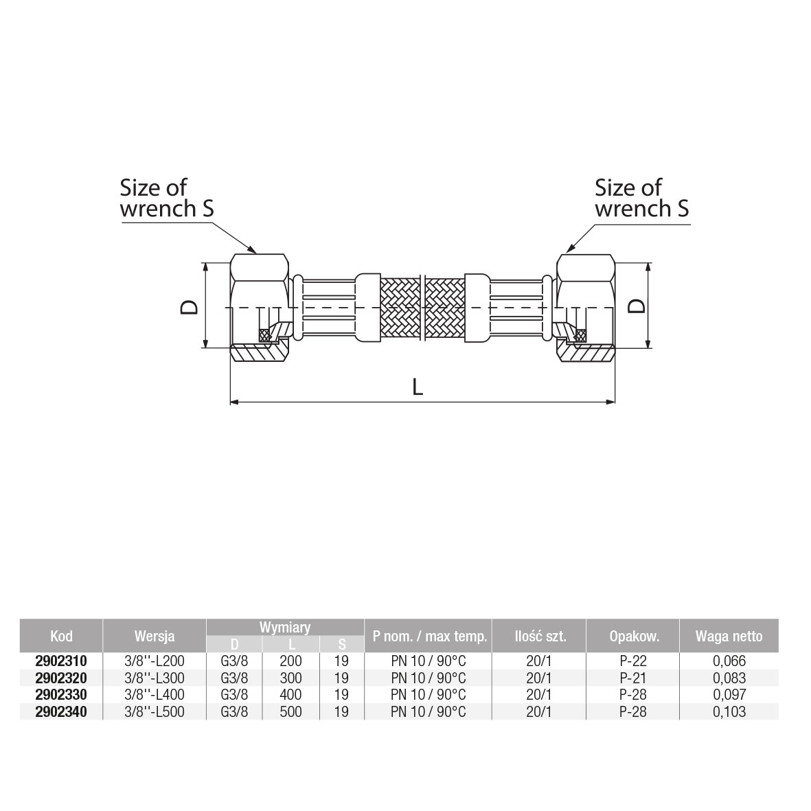 Wąż przyłączeniowy elastyczny VALVEX Viper Plus z oplotem (stal nierdzewna), GW x GW, 3/8'' x 3/8'', długość 500 mm