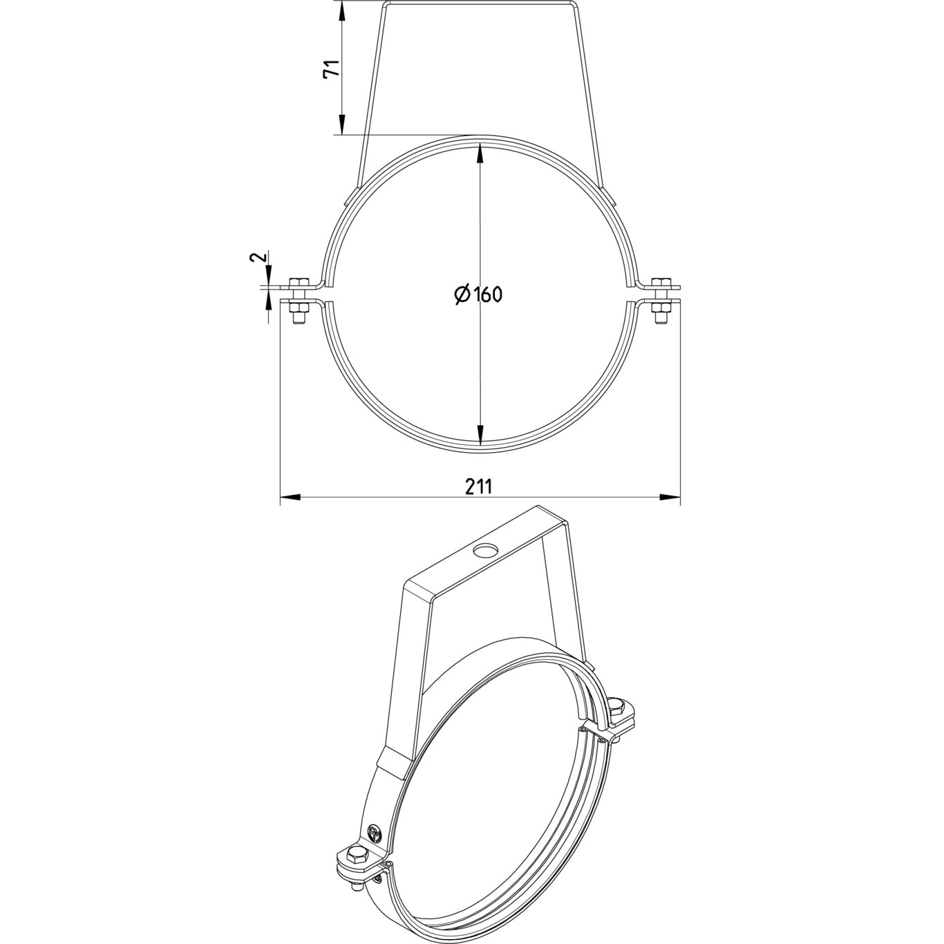 Wieszak do rur dwu-częściowy DN =160 mm, z mocowaniem do ściany, stal kwasoodporna