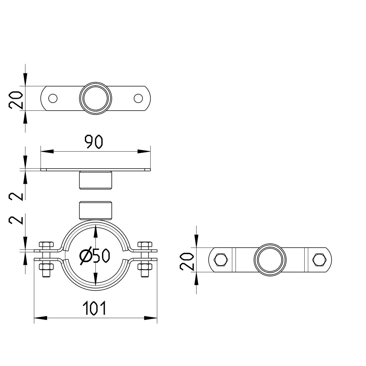 Wieszak do rur dwu-częściowy DN =50 mm, z mocowaniem do ściany