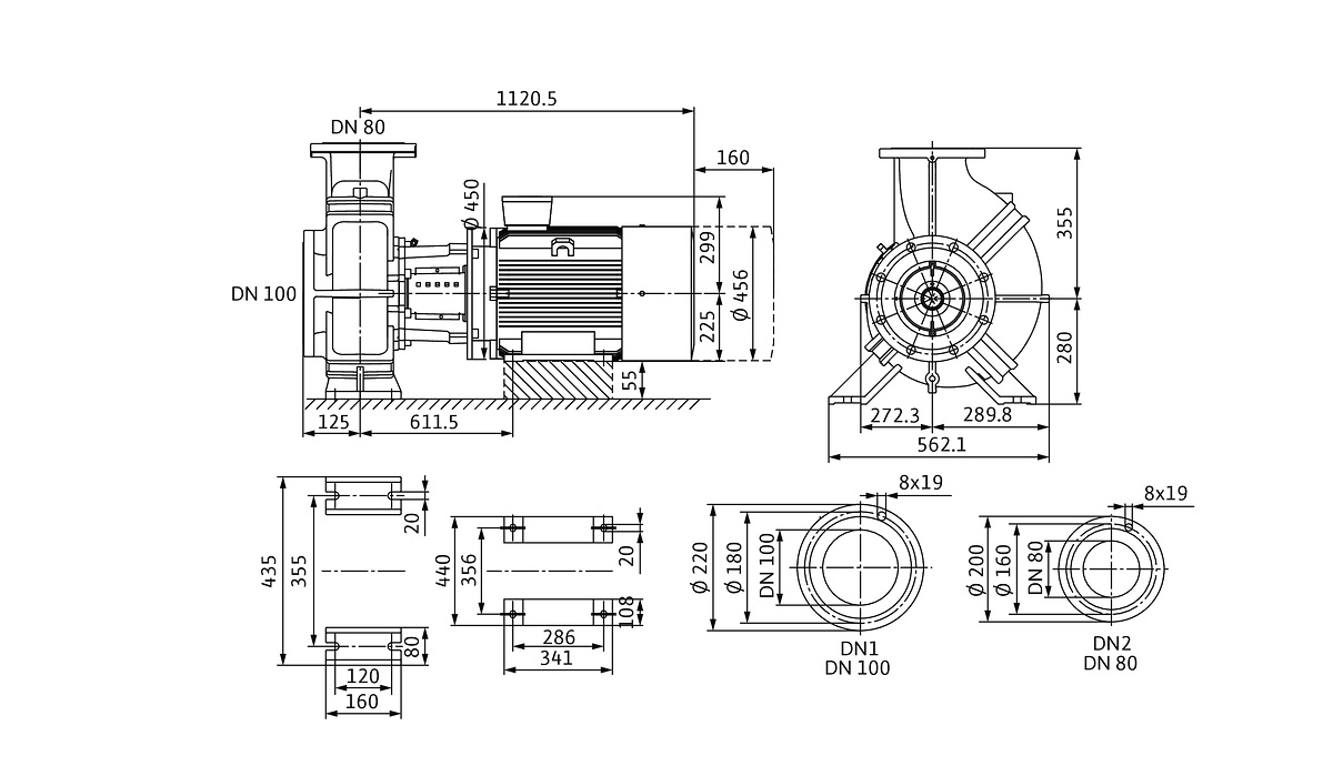 Jednostopniowa dławnicowa pompa wirowa o konstrukcji blokowej do ustawienia na fundamencie. Odporna na drgania, zapewniająca cichą pracę konstrukcja blokowa z latarnią i sztywno połączonym silnikiem standardowym (silnik znormalizowany). Z wymuszonym opływem, niezależnym od kierunku obrotów mieszkowym uszczelnieniem mechanicznym (od 37 kW/4-bieg. opcjonalnie z kasetowym uszczelnieniem mechanicznym w systemie cofki do wymiany uszczelnienia mechanicznego bez demontażu silnika) oraz wirnikiem redukującym kawitację. Kołnierze z przyłączami pomiarowymi ciśnienia R 1/8. Korpus pompy i latarnia z powłoką kataforetyczną. W wersji standardowej silniki w klasie IE3. Pompy z silnikami ≥ 5,5 kW są seryjnie wyposażone w czujniki termistorowe jako zabezpieczenie silnika. Skrzynia zaciskowa do silnika ≤ 7,5 kW może być wykonana z metalu lub tworzywa sztucznego. Jeśli bezwzględnie wymagana jest metalowa skrzynia zaciskowa, należy zamówić odpowiedni wariant specjalny. Skrzynie zaciskowe do silnika