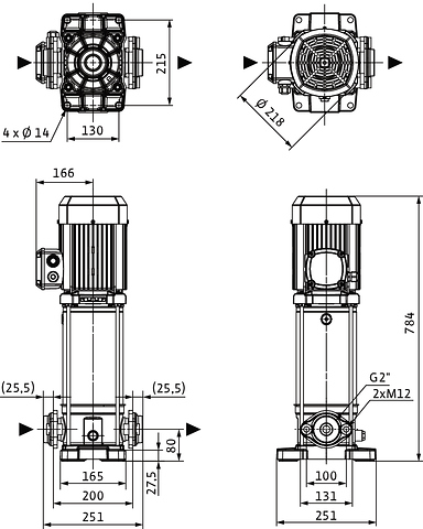 Pompa o kompaktowej konstrukcji z wałem przelotowym silnik-pompa i niezależnym od kierunku obrotów uszczelnieniem mechanicznym. Komory stopni, wirniki i kierownice przepływowe ze stali nierdzewnej. Płyta podstawy pompy z żeliwa z powłoką kataforetyczną z połączeniem kołnierzowym owalnym.