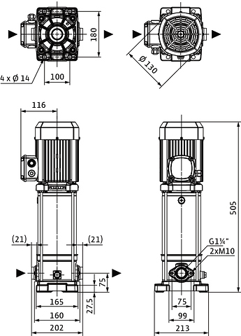 Pompa o kompaktowej konstrukcji z wałem przelotowym silnik-pompa i niezależnym od kierunku obrotów uszczelnieniem mechanicznym. Komory stopni, wirniki i kierownice przepływowe ze stali nierdzewnej. Płyta podstawy pompy z żeliwa z powłoką kataforetyczną z połączeniem kołnierzowym owalnym.