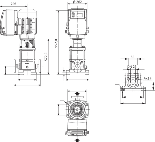 Normalnie zasysająca, wielostopniowa, pionowa, wysokociśnieniowa pompa wirowa o konstrukcji typu Inline z wbudowaną przetwornicą częstotliwości chłodzoną powietrzem. Wbudowana przetwornica częstotliwości umożliwia zmienną prędkość obrotową oraz regulację ciśnienia i PID.