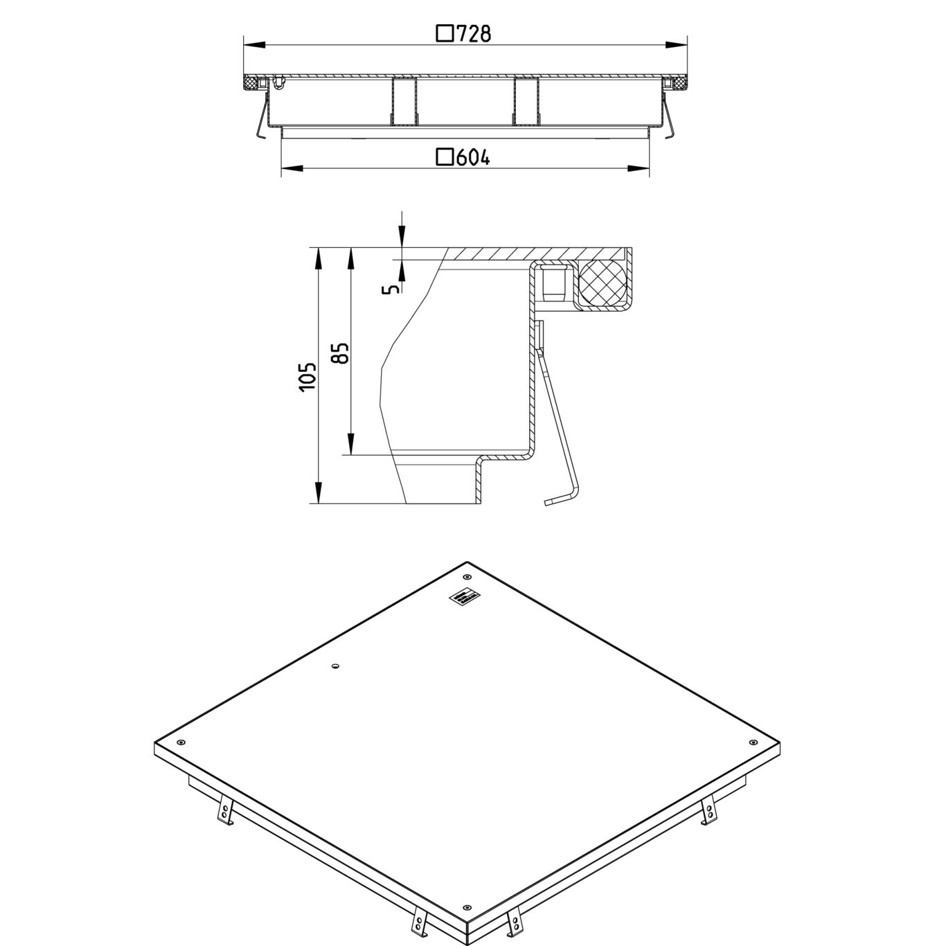 Właz rewizyjny 600x600 mm, z pokrywą ryflowaną
