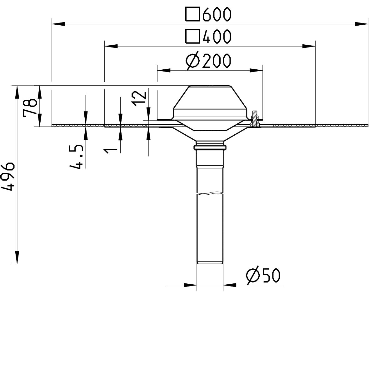 Wpust dachowy podciśnieniowy DN =50mm z kołnierzem ze stali nierdzewnej i dodatkowym kołnierzem z papy