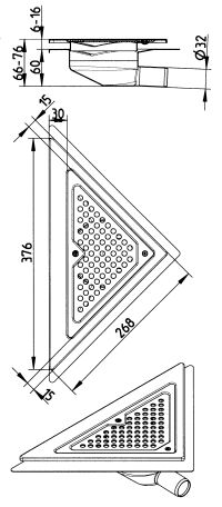 Wpust mini TRIO, odpływ poziom DN =32/40, w komplecie adaptor, syfon wykluczony, do montażu wzdłuż ściany