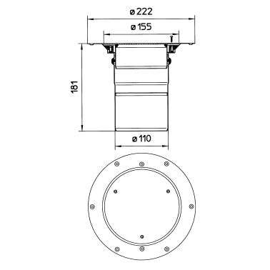 Wpust rewizyjny, odpływ pion DN =110 mm, z rączką, do podłóg z wykładziną, ruszt okrągły, stal kwasoodporna