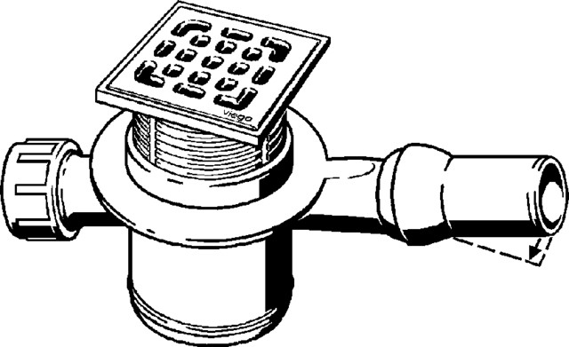 Wpust VIEGA 49214 z 1 przyłączem DN 50, odpływ pionowy, kratka 100x100mm stal
