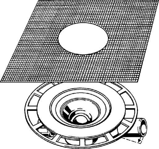 Wpust VIEGA 4938 z 1 przyłączem DN 50, odpływ pionowy, kratka 300x300mm