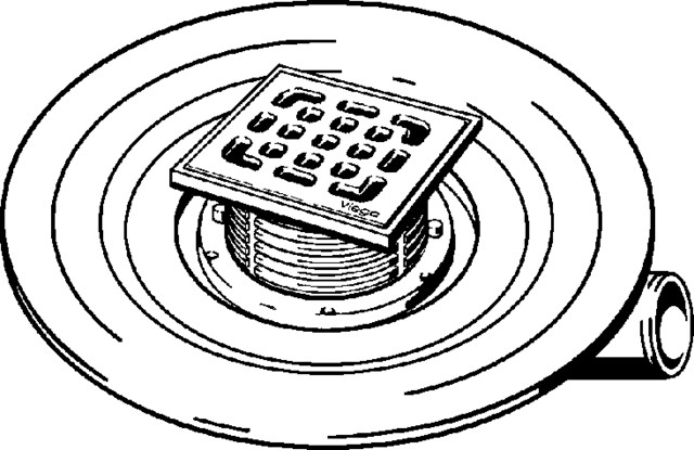 Wpust VIEGA 49432 z 1 przyłączem DN 70, odpływ pionowy, kratka 100x100mm tworzywo sztuczne