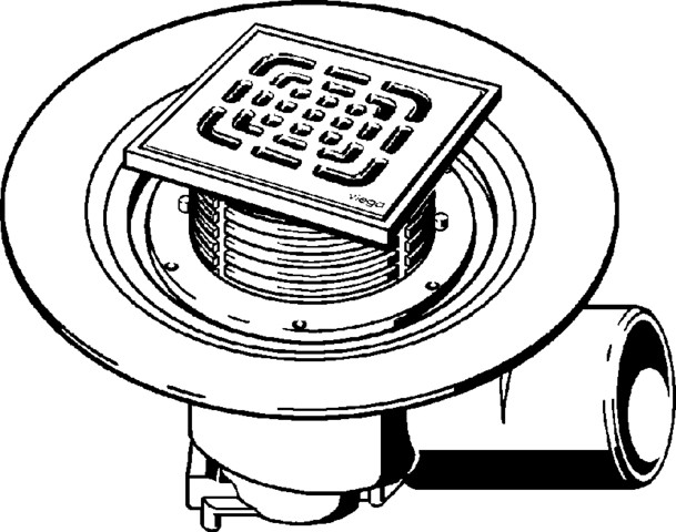 Wpust VIEGA 49551 z 1 przyłączem DN 100, odpływ pionowy, kratka 150x150mm stal