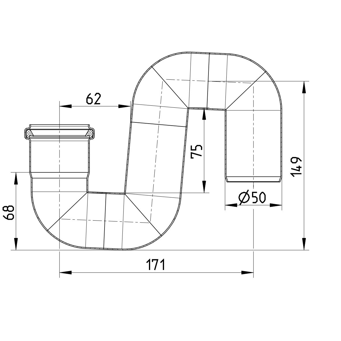 Zasyfonowanie kolankowe 180 st. Syfon rurowy "S" DN =50 mm, stal kwasoodporna