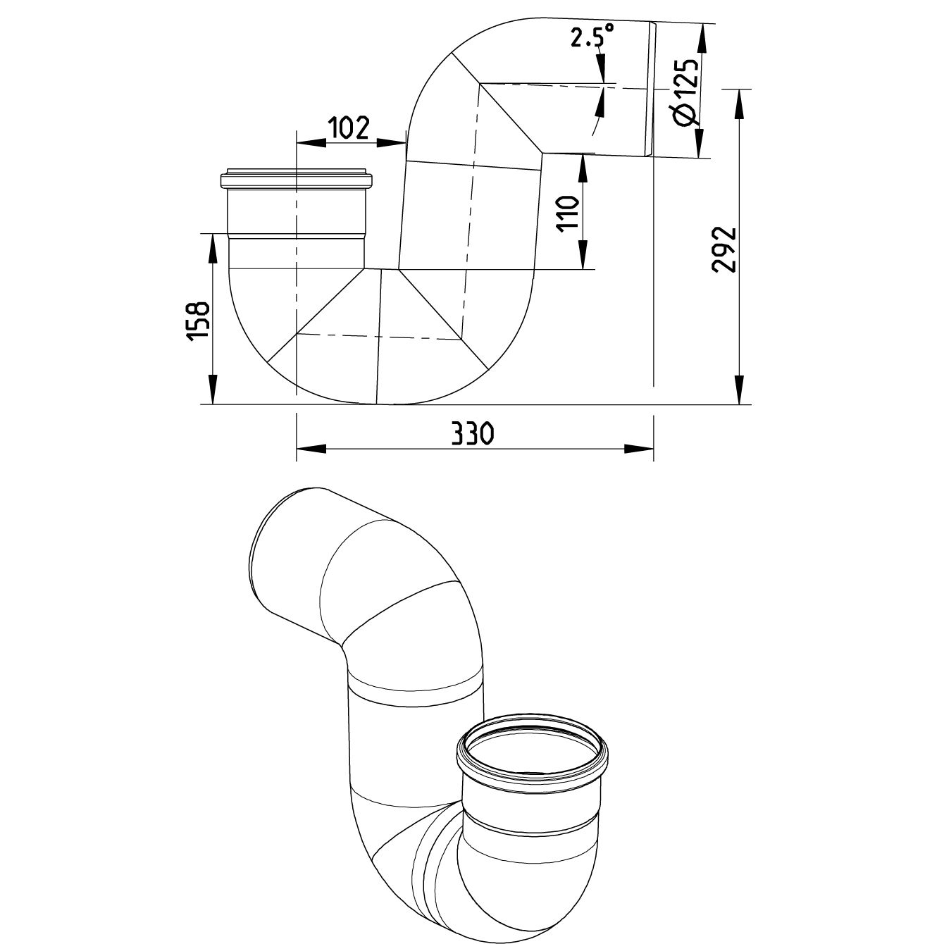 Zasyfonowanie kolankowe 87.5 st. Syfon rurowy "P" DN =125 mm, stal kwasoodporna