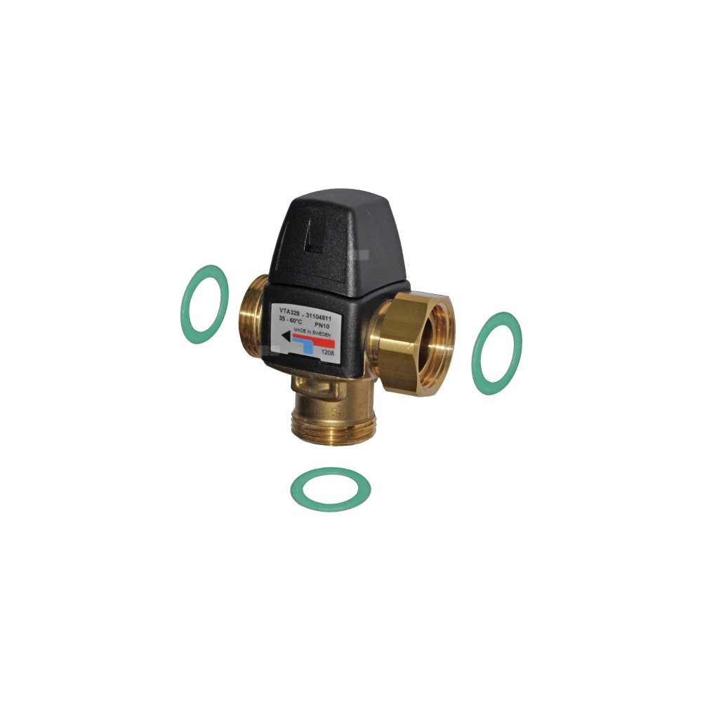 Zabezpiecza użytkowników przed poparzeniem w przypadku wzrostu temperatury w zasobniku solarnym. Zakres nastawy temperatur: 30-65°C, średnica przyłączy 1".
