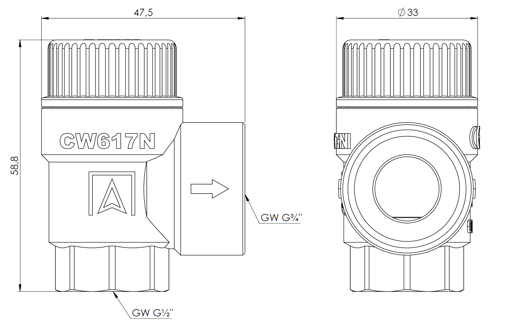 Zawór bezpieczeństwa AFRISO MSW sprężynowy mosiądz 6 bar GW x GW 1/2'' x 3/4''
