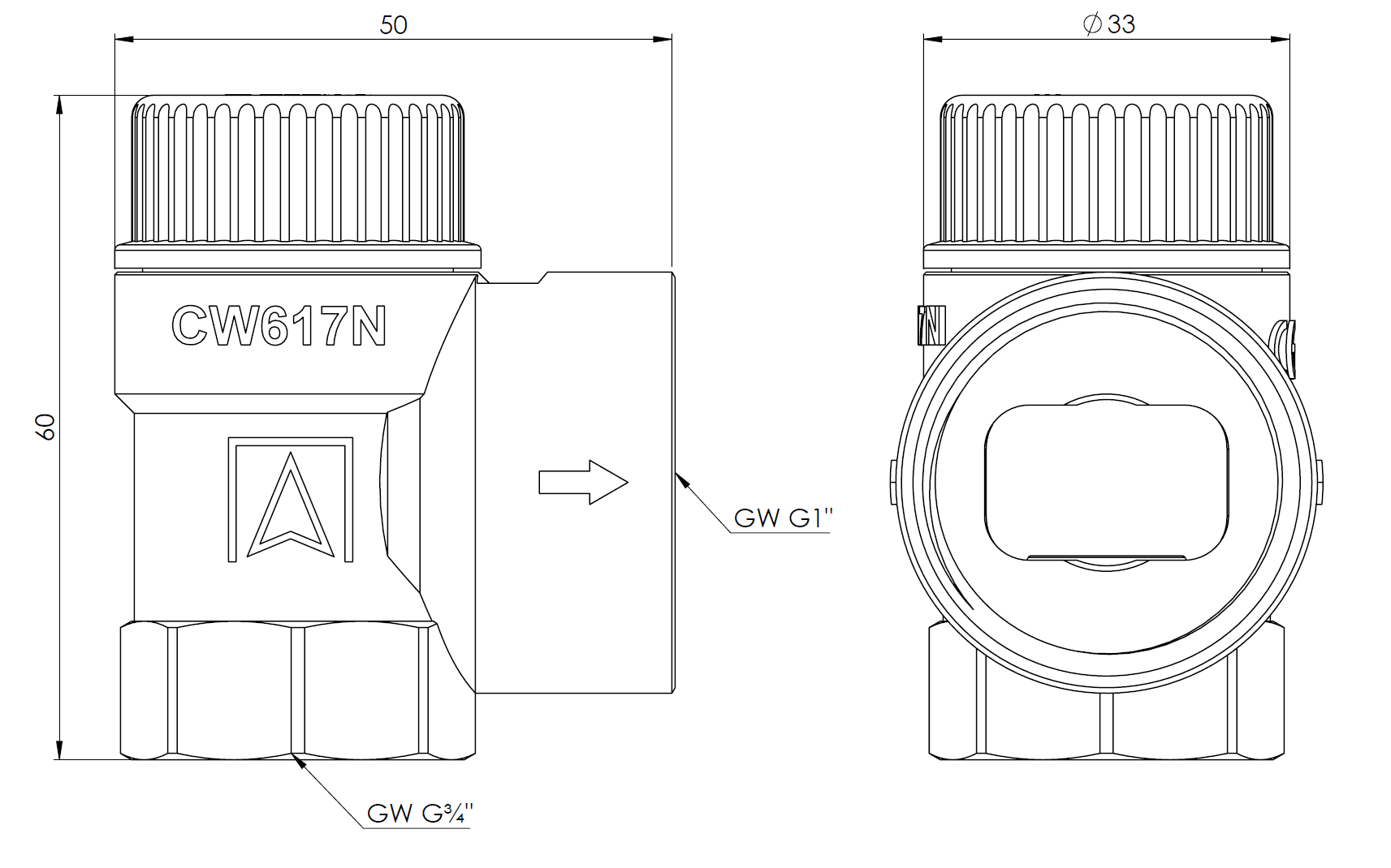 Zawór bezpieczeństwa AFRISO MSW sprężynowy mosiądz 6 bar GW x GW 3/4'' x 1''
