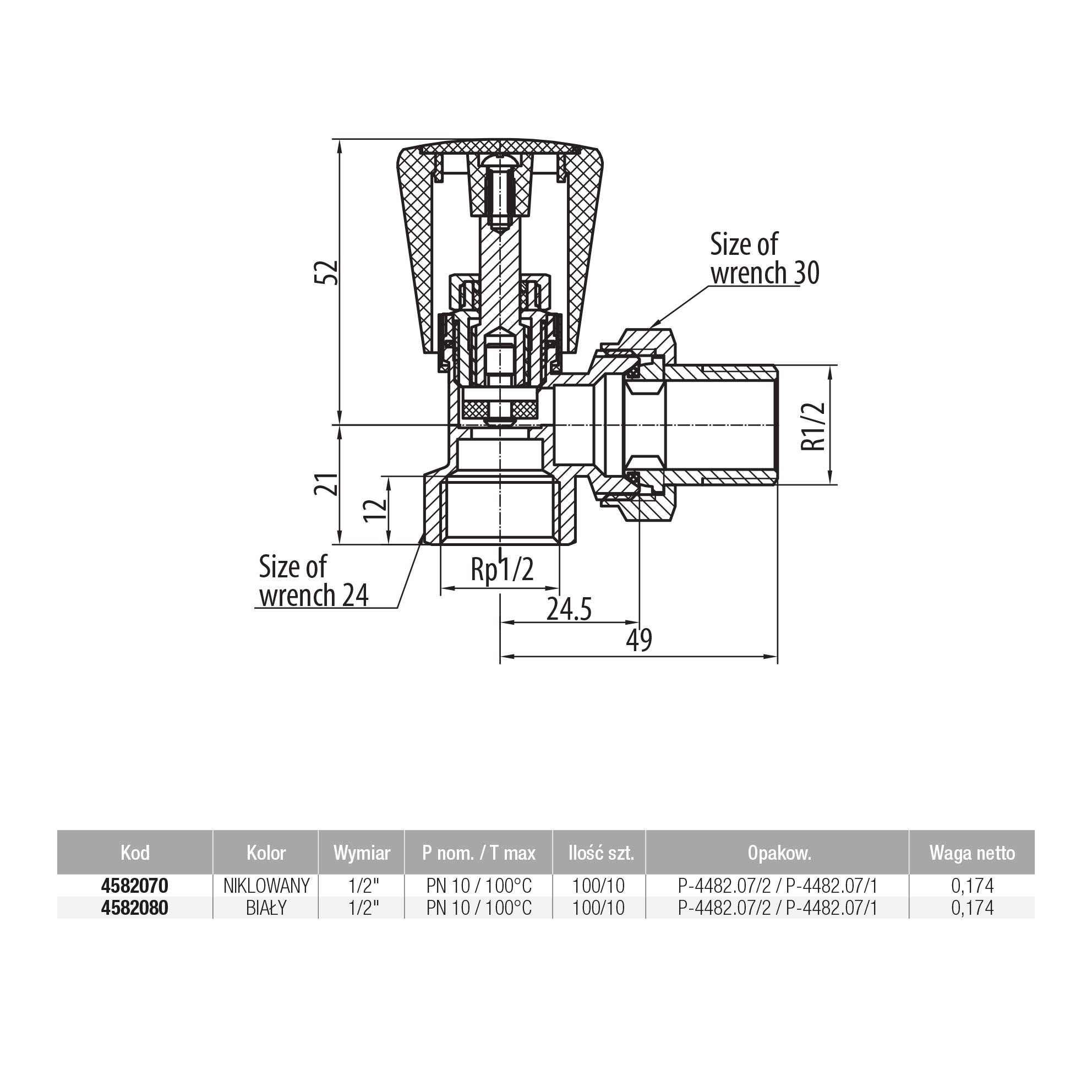 Zawór grzejnikowy zasilający prosty ACTIV PLUS 1/2, niklowany