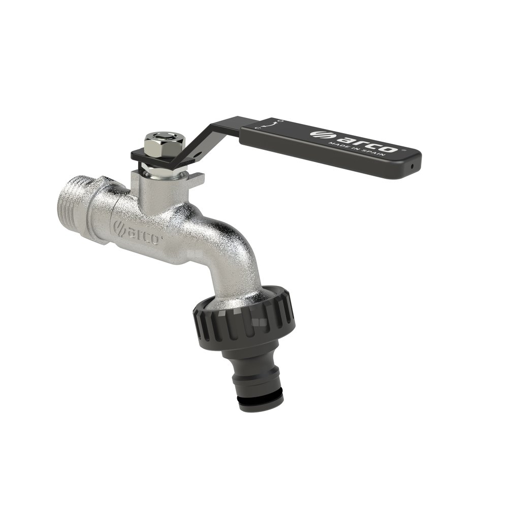 Zawór kulowy ARCO JARDIN (chrom) czerpalny 1/2'' x 3/4'' GZ+szybkozłączka plastikowa kątowy, uchwyt: dźwignia