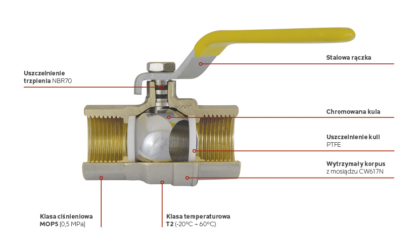 - Ciśnienie nominalne: MOP5 (5 bar) bar