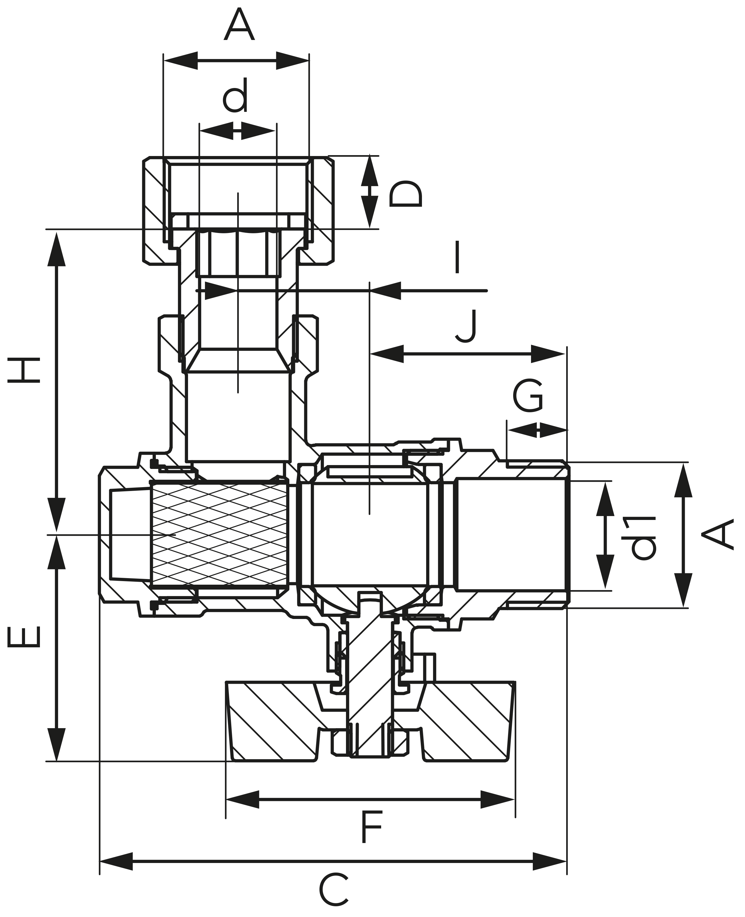 Zawór kątowy z obrotową nakrętką. Uszczelnienie płaskie, uszczelka EPDM. Konstrukcja zaworu umożliwia prosty montaż i demontaż urządzeń. Zawór wykonany jest z wysokogatunkowego mosiądzu CW617N - 4MS. Zastosowanie w instalacjach, gdzie medium to woda lub woda/glikol. Uchwyt zaworu w postaci motylka umieszczony jest pod korpusem zaworu. Zawór posiada filtr ze stali nierdzewnej AISI304