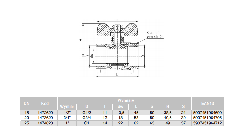 Kurek kulowy nikl. z dławikiem, z motyl. alum. (MAl) (wersja N-W) ORO 1/2