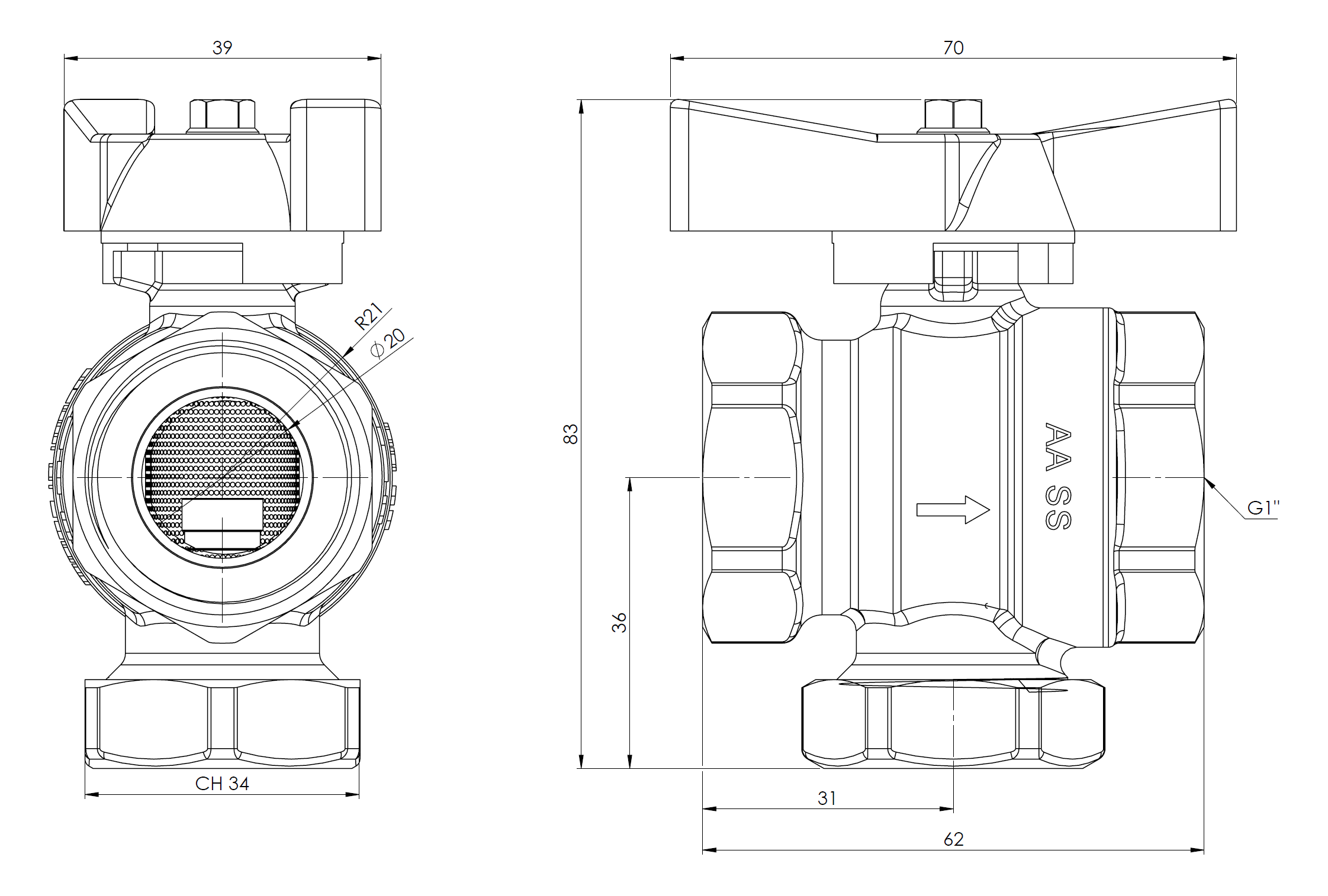 Zawór kulowy z filtrem siatkowym i magnesem BFV, GW G1''