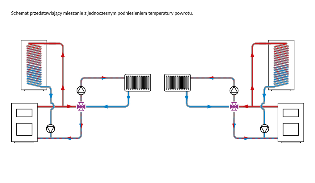 Miesza w odpowiednich proporcjach strumienie czynnika wypływającego na instalację i powracającego do kotła.