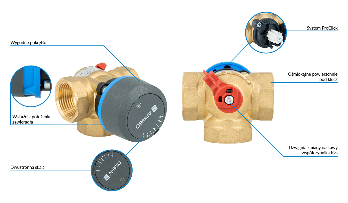 Zawór obrotowy trójdrogowy AFRISO ARV 384 Vario ProClick, mieszający, DN 25