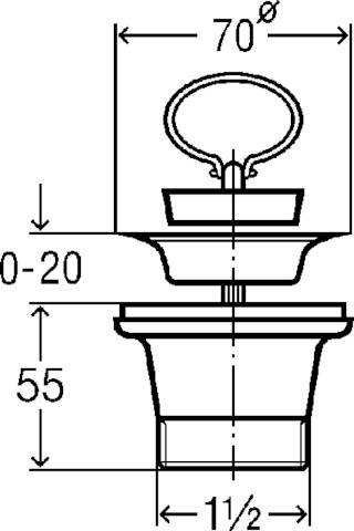 Zawór odpływowy przeznaczenie: zlewozmywak, nr wzoru 7622.31 G: 1½ fi: 70 wysokość zabudowy dolnej części zaworu: 55