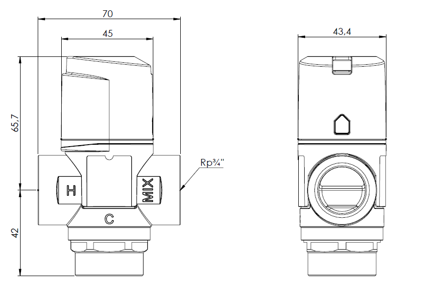 Zawór regulacyjny termostatyczny do wody ciepłej AFRISO ATM 333 mosiądz GW 3/4'', DN 20, zakres temp. 35-60'C, Kvs 1.6 m3/h, maksymalna temperatura 90'C, maksymane ciśnienie 10 bar
