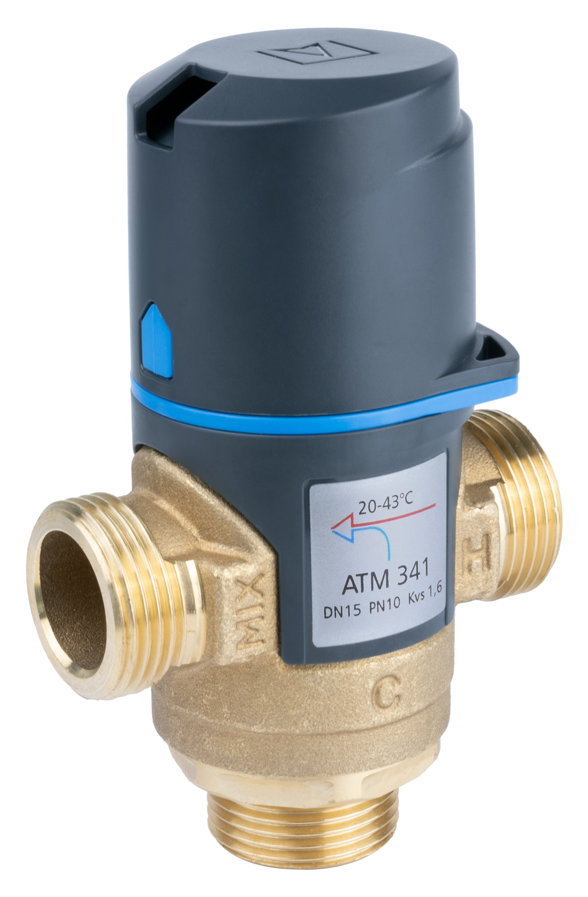 Zawór regulacyjny termostatyczny do wody ciepłej AFRISO ATM 341 mosiądz GZ 3/4'', DN 15, zakres temp. 20-43'C, Kvs 1.6 m3/h, maksymalna temperatura 90'C, maksymane ciśnienie 10 bar