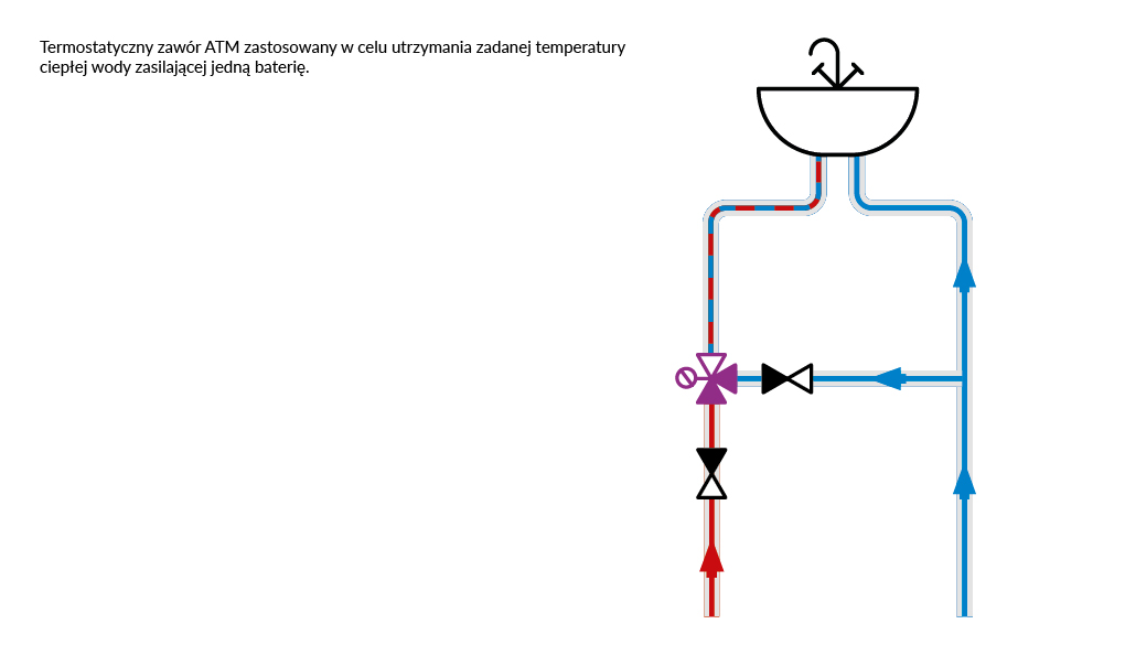 Stosowany w instalacjach ogrzewania podłogowego i c.w.u.W instalacjach c.w.u. montowany między zasobnikiem a punktami poboru wody.