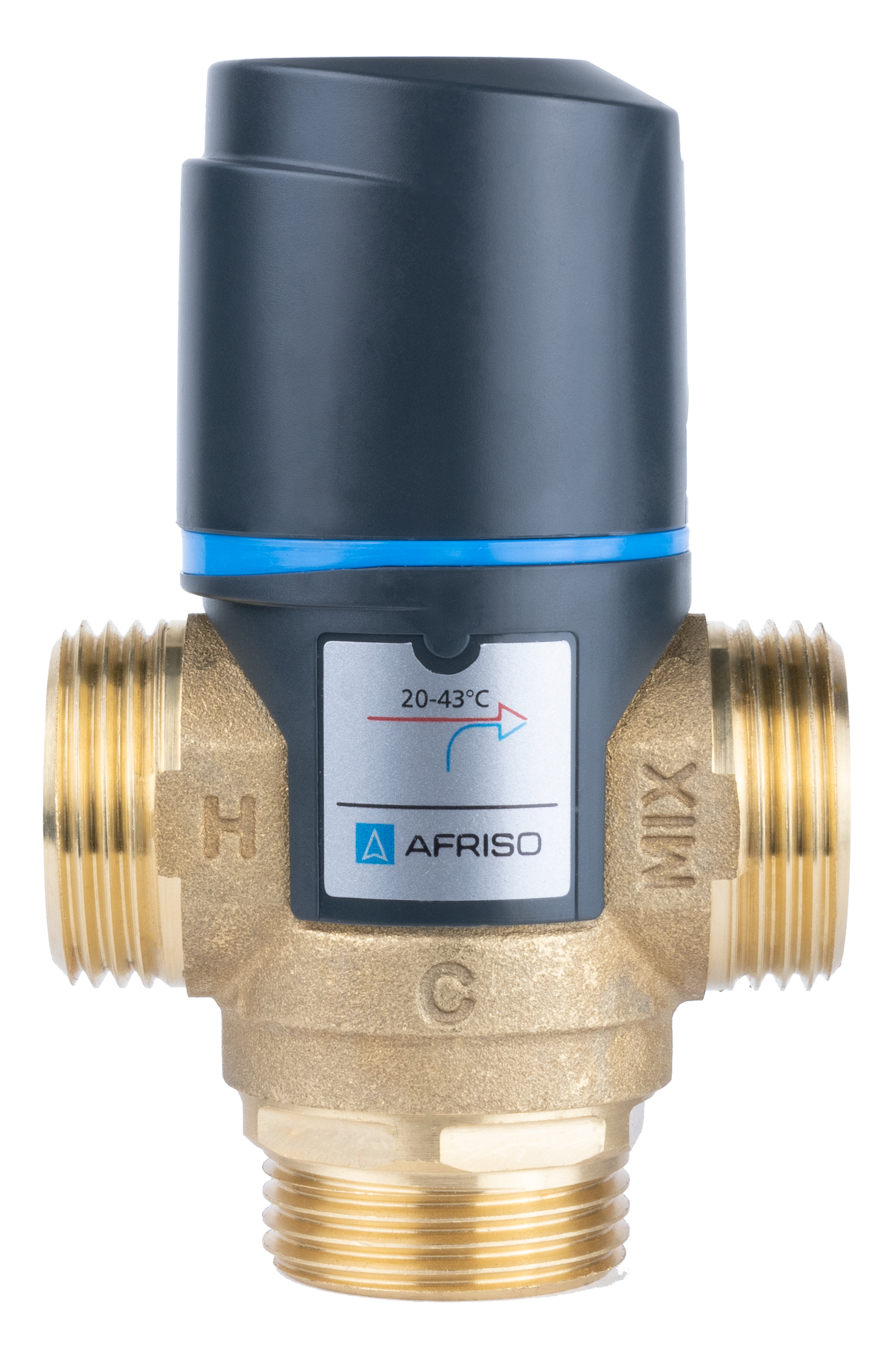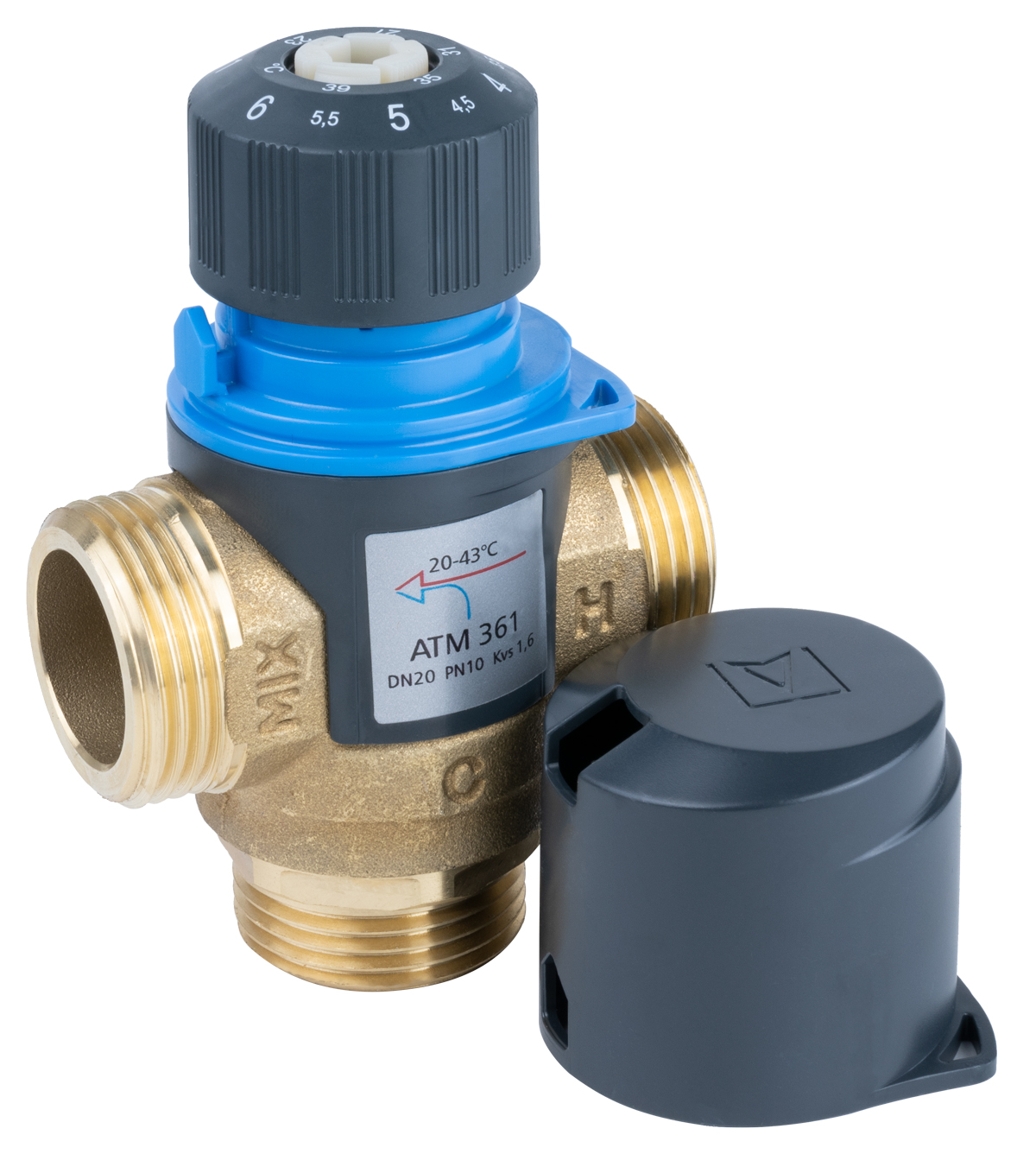 Zawór regulacyjny termostatyczny do wody ciepłej AFRISO ATM 361 mosiądz GZ 1'', DN 20, zakres temp. 20-43'C, Kvs 1.6 m3/h, maksymalna temperatura 90'C, maksymane ciśnienie 10 bar