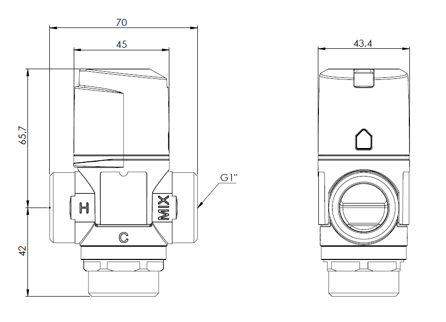 Zawór regulacyjny termostatyczny do wody ciepłej AFRISO ATM 363 mosiądz GZ 1'', DN 20, zakres temp. 35-60'C, Kvs 1.6 m3/h, maksymalna temperatura 90'C, maksymane ciśnienie 10 bar