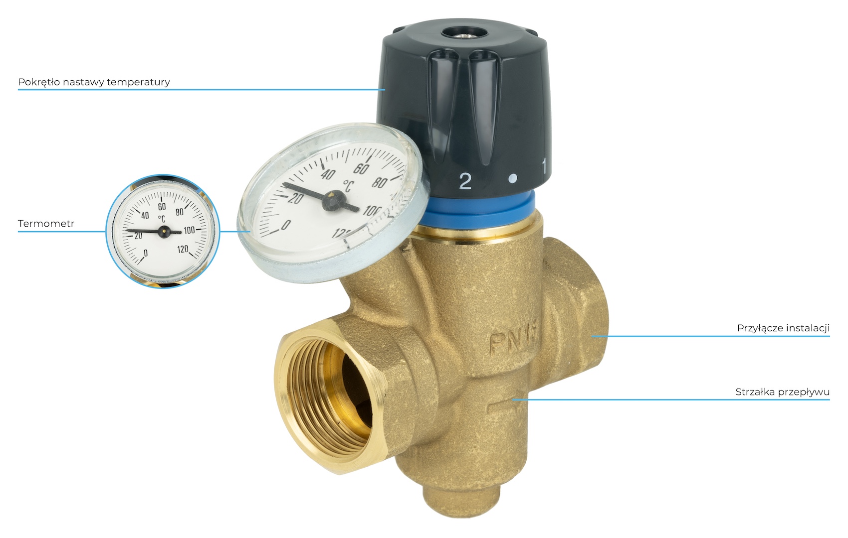 Utrzymuje w danym pionie / gałęzi stałą temperaturę, zgodną z nastawą na pokrętle, równoważąc tym samym całą instalację.