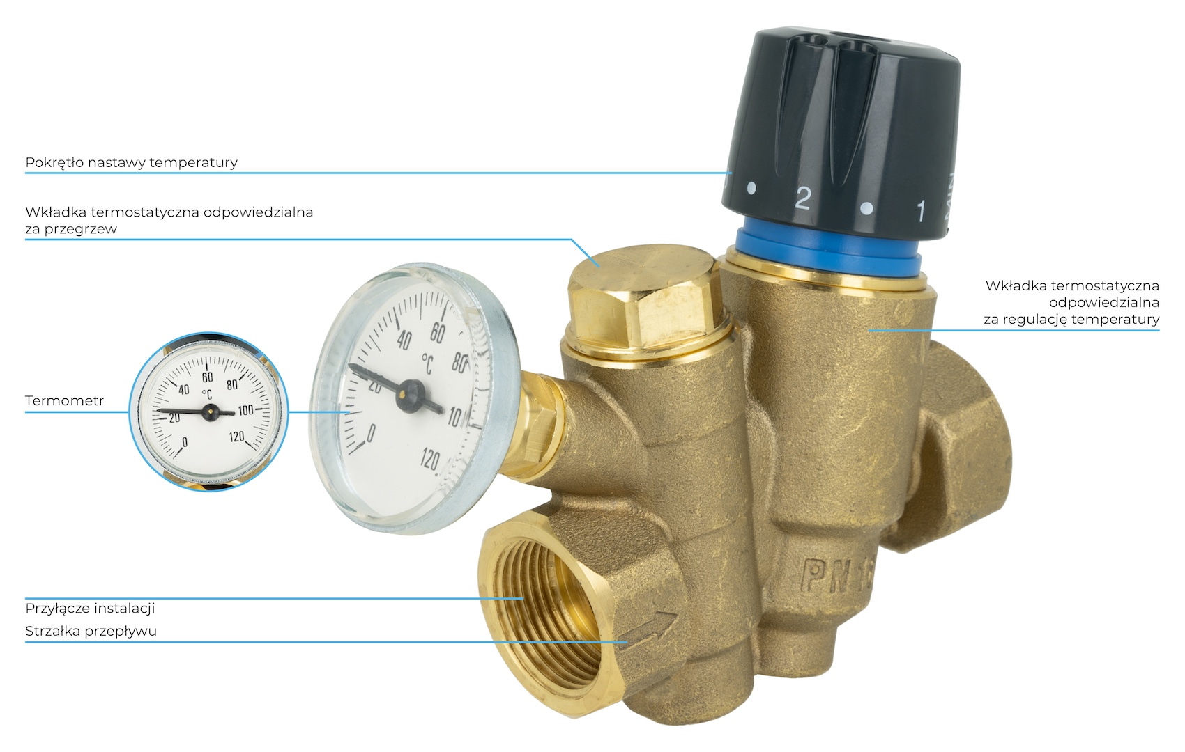 Utrzymuje w danym pionie / gałęzi stałą temperaturę, zgodną z nastawą na pokrętle, równoważąc tym samym całą instalację.