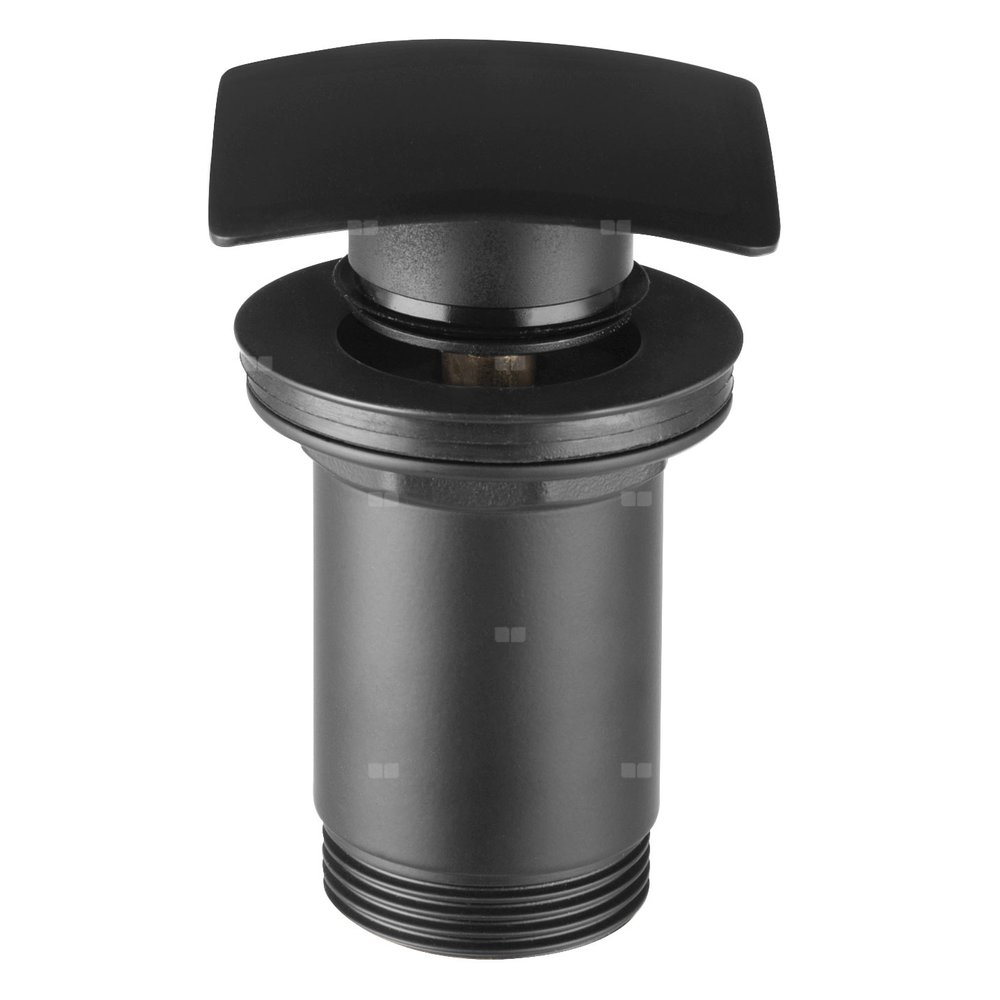 Mosiężny, trwały, czarny korek przeznaczony do umywalek z przelewem. Zaślepka korka w kwadratowym kształcie.
