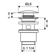 Zamykany zawór trzpieniowy G 1 1/4 GZ z zamknięciem przyciskowym dla umywalek z przelewem