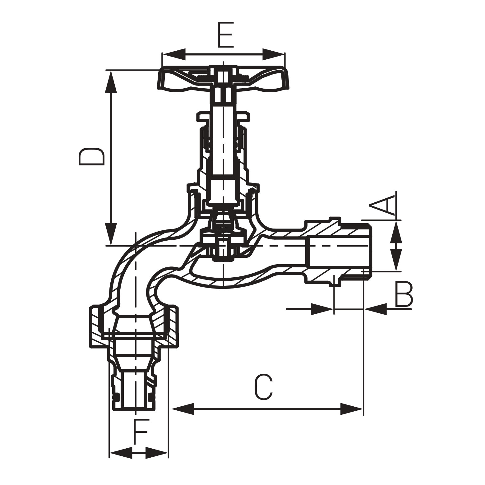 Zawór wodny FERRO Czerpalny grzybkowy, żeliwo GZ 3/4'' x złączka do węża 1''