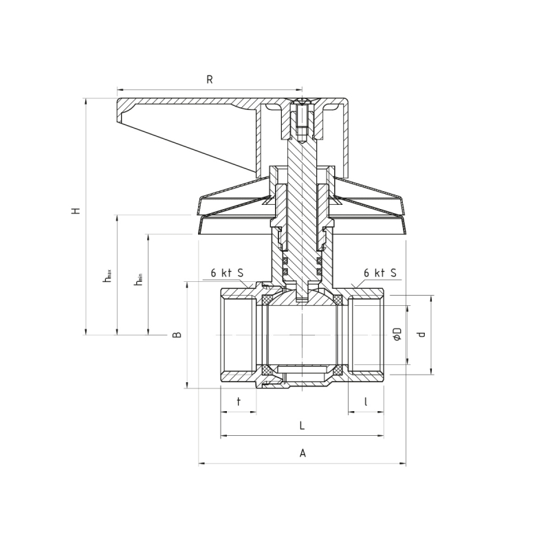 • KADŁUB, WKRĘTKA: mosiądz z powłoką niklowaną z zewnątrz • KULA: mosiądz z powłoką chromowaną • TRZPIEŃ: mosiądz • USZCZELKA KULI: PTFE (teflon) • USZCZELKA TRZPIENIA: pierścienie uszczelniające typu „O” - NBR • POKRĘTŁO: stop cynku