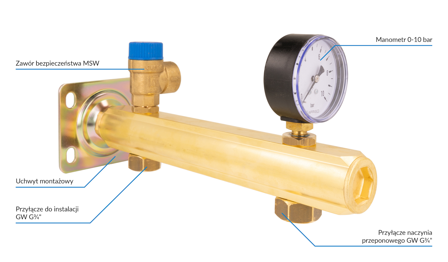 Zespół przyłączeniowy AFRISO BSB 3/4'' GW x GW, max. 6 bar + wskaźnik ciśnienia