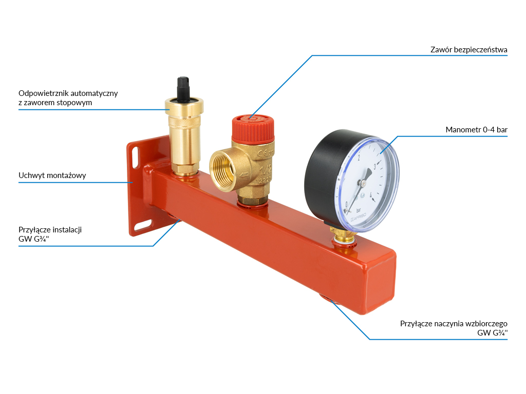 Stosowana w zamkniętych instalacjach grzewczych.Montowana na ścianie w bezpośredniej bliskości zabezpieczanego urządzenia.