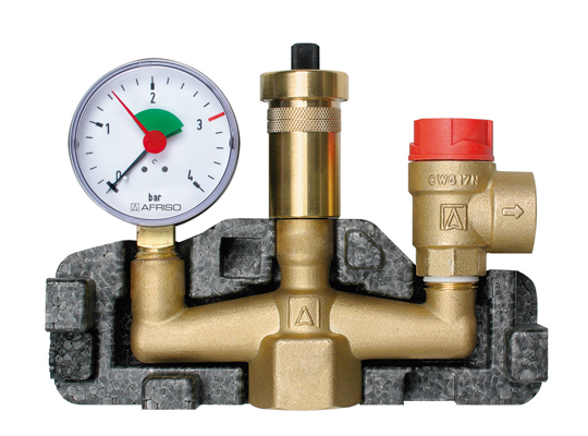 Zespół przyłączeniowy AFRISO KSG 1'' GW x GW, max. 3 bar + wskaźnik ciśnienia