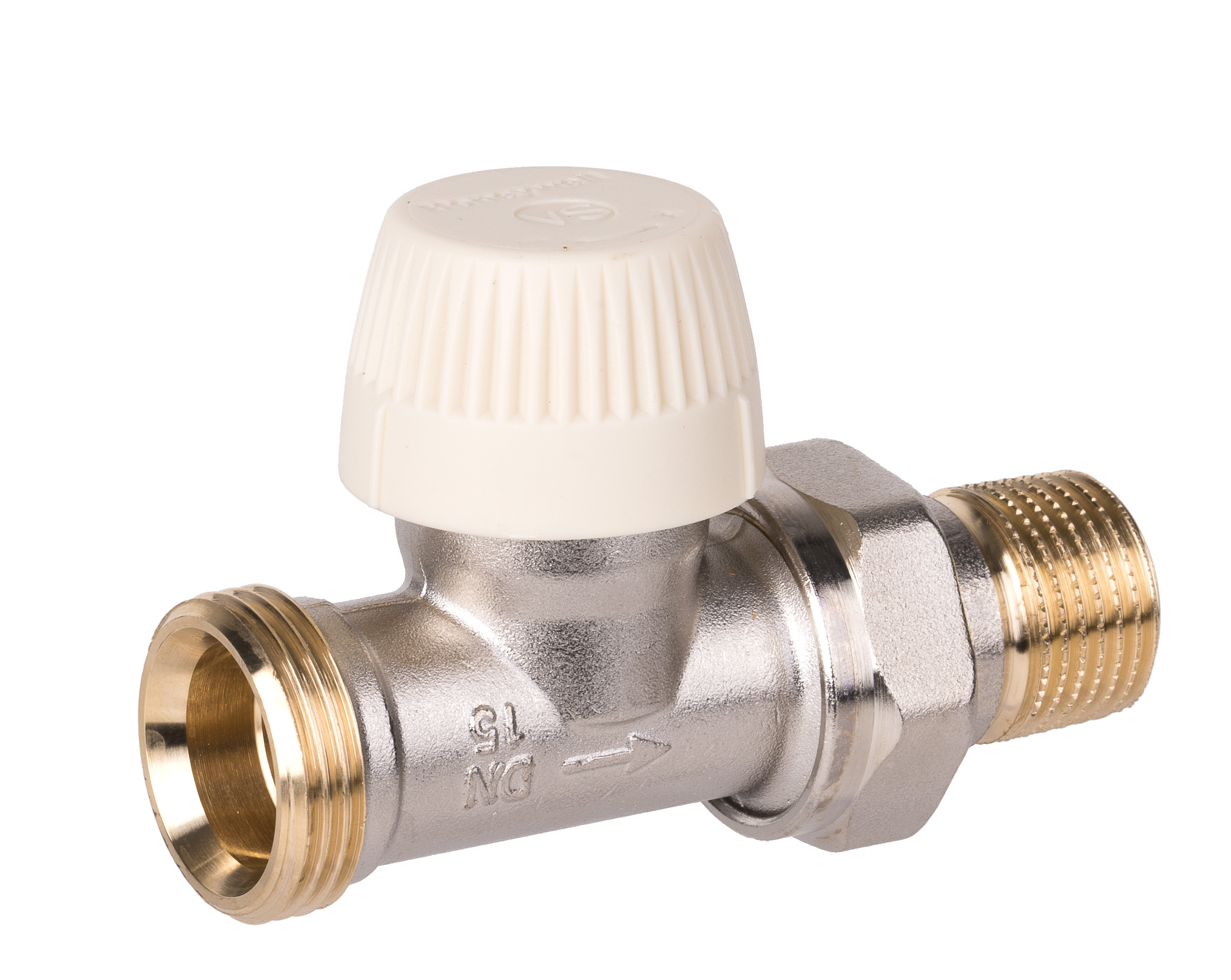 2. Zawór termostatyczny z wkładką SX, prosty, przyłącze 1/2". Korpus z gwintami zewnętrznymi i złączką do grzejnika z uszczelnieniem metal-metal